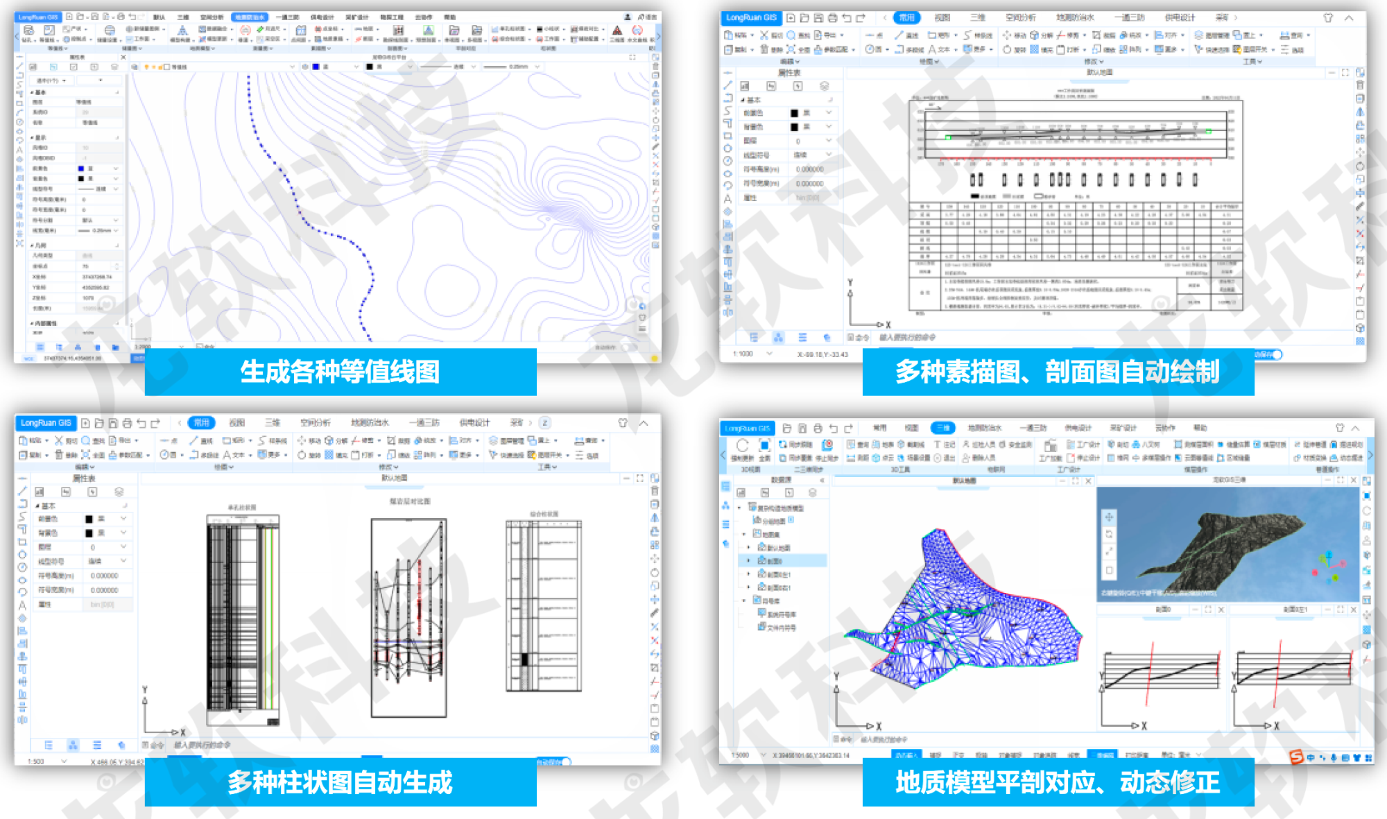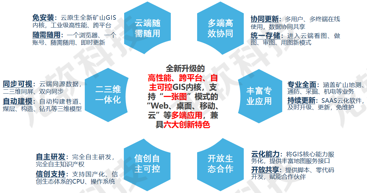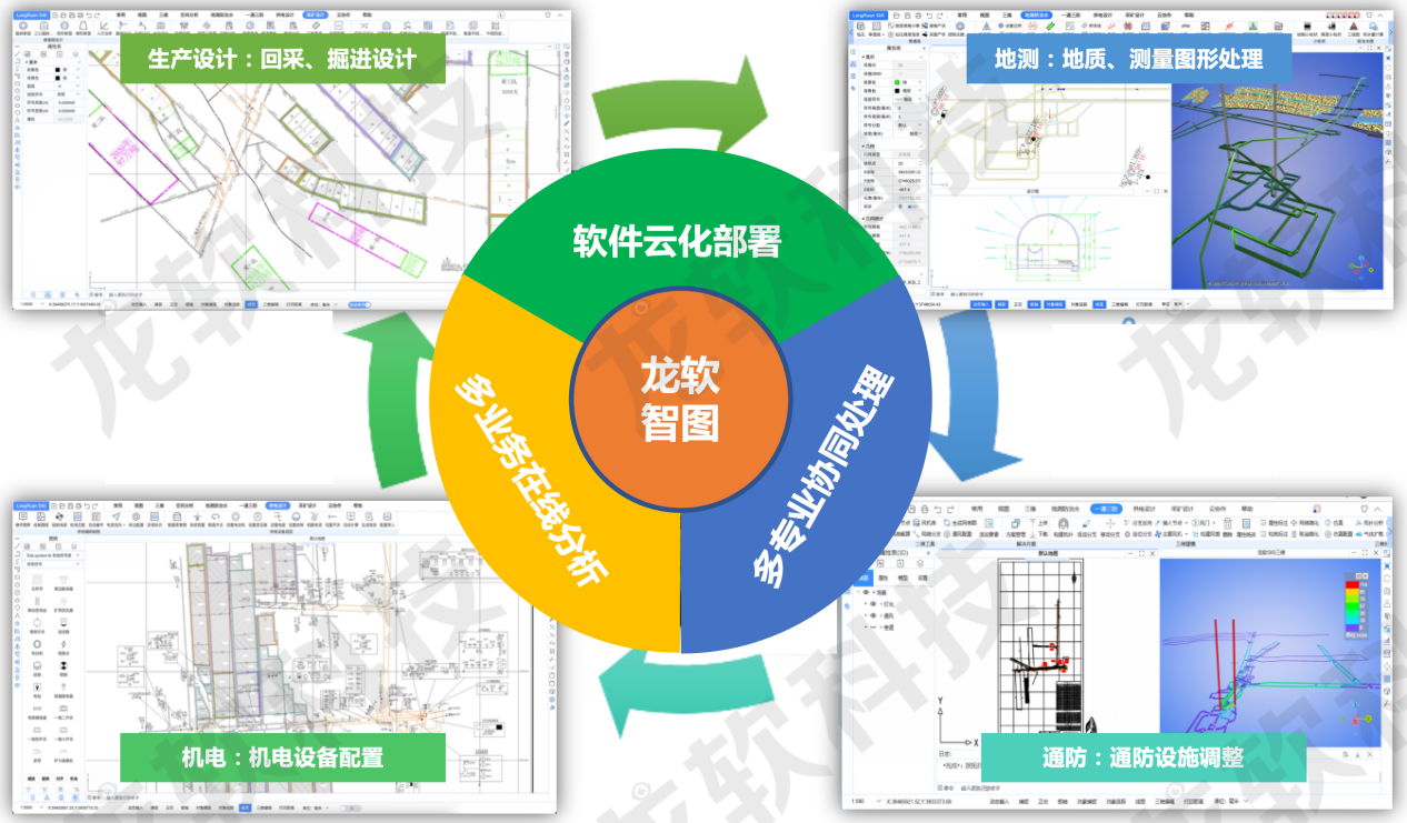 基于云服務架構(gòu)的龍軟云GIS(云地理信息系統(tǒng),簡稱“龍軟智圖v1.0”)龍軟科技從底層開發(fā)的、具有完全自主知識產(chǎn)權(quán)的新一代專業(yè)地理信息系統(tǒng)。該產(chǎn)品基于云服務、大數(shù)據(jù)、分布式協(xié)同、時空智能等技術(shù),針對礦山地測防治水、透明化地測保障、一通三防、采礦設計和供電設計等多維專題圖形處理實際需求,采用面向服務的架構(gòu)體系開發(fā),具有實用、易用、先進、可靠、可擴展等特點。