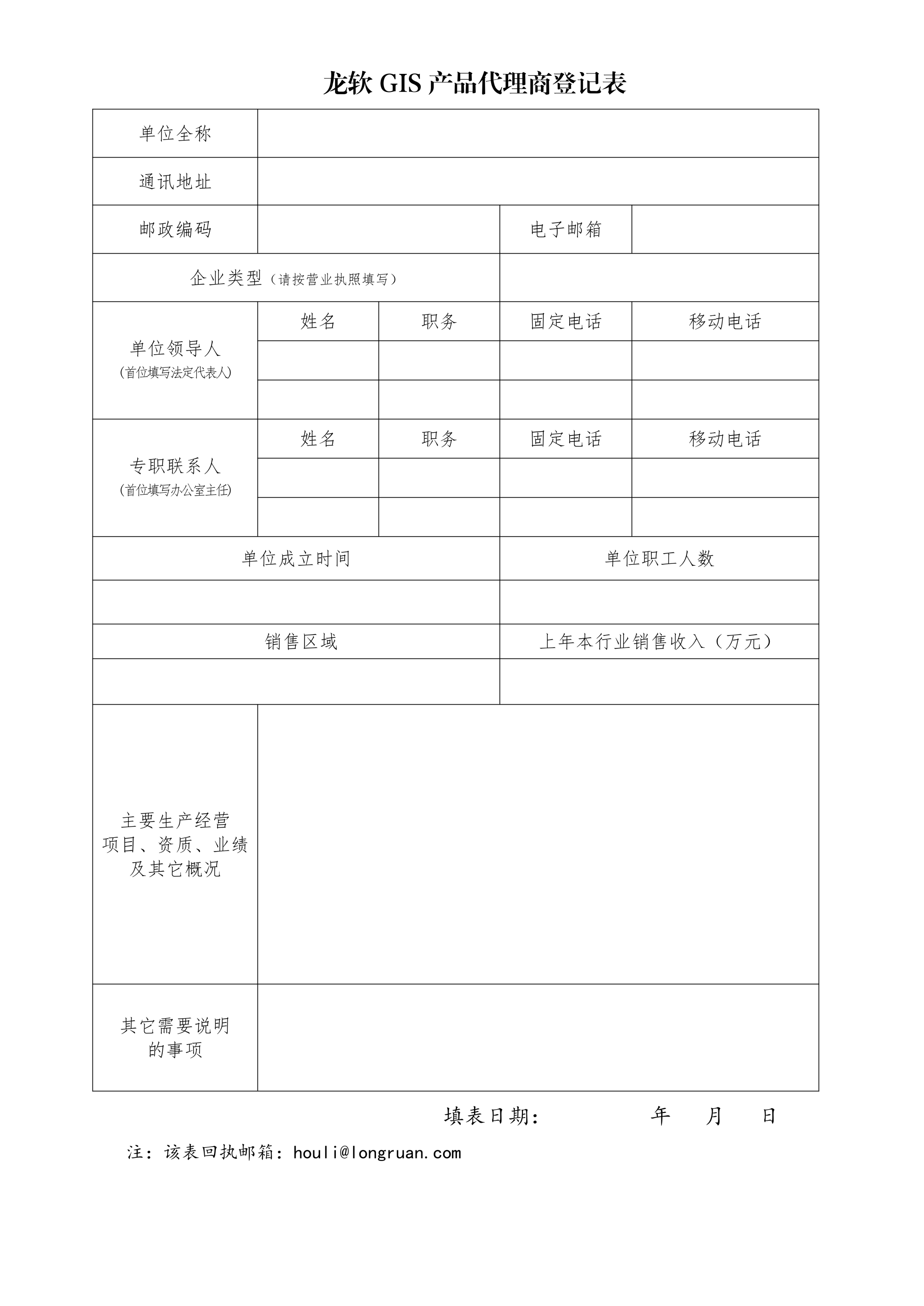 附件:龍軟GIS產(chǎn)品代理商登記表
