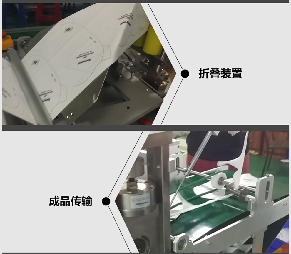 HK-MMF909D折疊口罩本體機(jī)、HK-MMF910D鼻梁條耳帶一體機(jī)、HK-MMF911D鼻梁條頭帶一體機(jī),是為霍尼韋爾定制的全自動(dòng)折疊口罩產(chǎn)線設(shè)備: