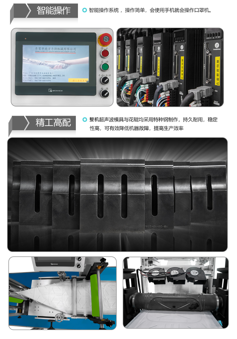 南方力勁頭套式KN95口罩機采用一體化機型設計,實現(xiàn)全自動化生產(chǎn),每分鐘產(chǎn)能40-70個,是生產(chǎn)外科用KN95口罩的必選設備。
