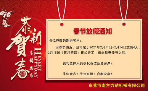 東莞市南方力勁機(jī)械有限公司2021年春節(jié)放假通知