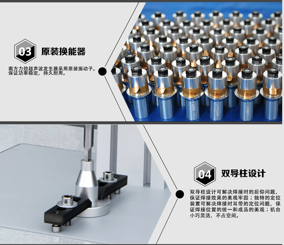 這款超聲波點(diǎn)焊機(jī)采用了NTK換能器,確保輸出穩(wěn)定,性能可靠。同時(shí),整機(jī)設(shè)計(jì)小巧,操作方便,無需復(fù)雜的設(shè)置和調(diào)試,即可投入使用。不論是拉鏈定位、上下止、肩帶焊接,還是織帶打棗、橡筋帶焊接等任務(wù),都能輕松應(yīng)對(duì)。