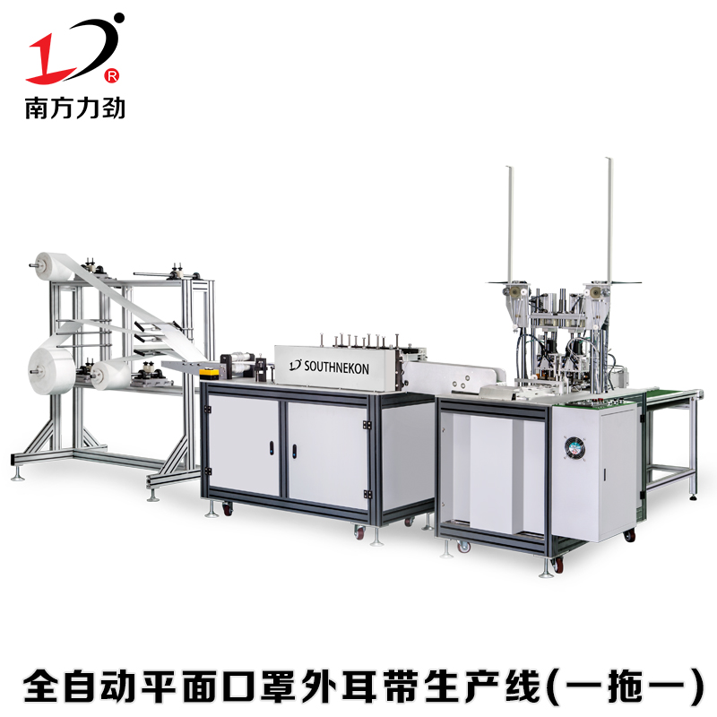 我們知道平面口罩是由口罩本體與耳帶組合而成,傳統(tǒng)平面口罩機是由一臺本體機生產(chǎn)口罩本體,再由內(nèi)/外耳帶機焊接耳帶,為了實現(xiàn)本體機與自動點耳帶機產(chǎn)量的 配合,我們需要一臺本體機組合一臺內(nèi)外耳帶機,以此達到產(chǎn)線的 大效率.南方力勁 NK-UMM06一拖一平面口罩機實現(xiàn)機器的自動化生產(chǎn),每分鐘產(chǎn)量達60-80片!