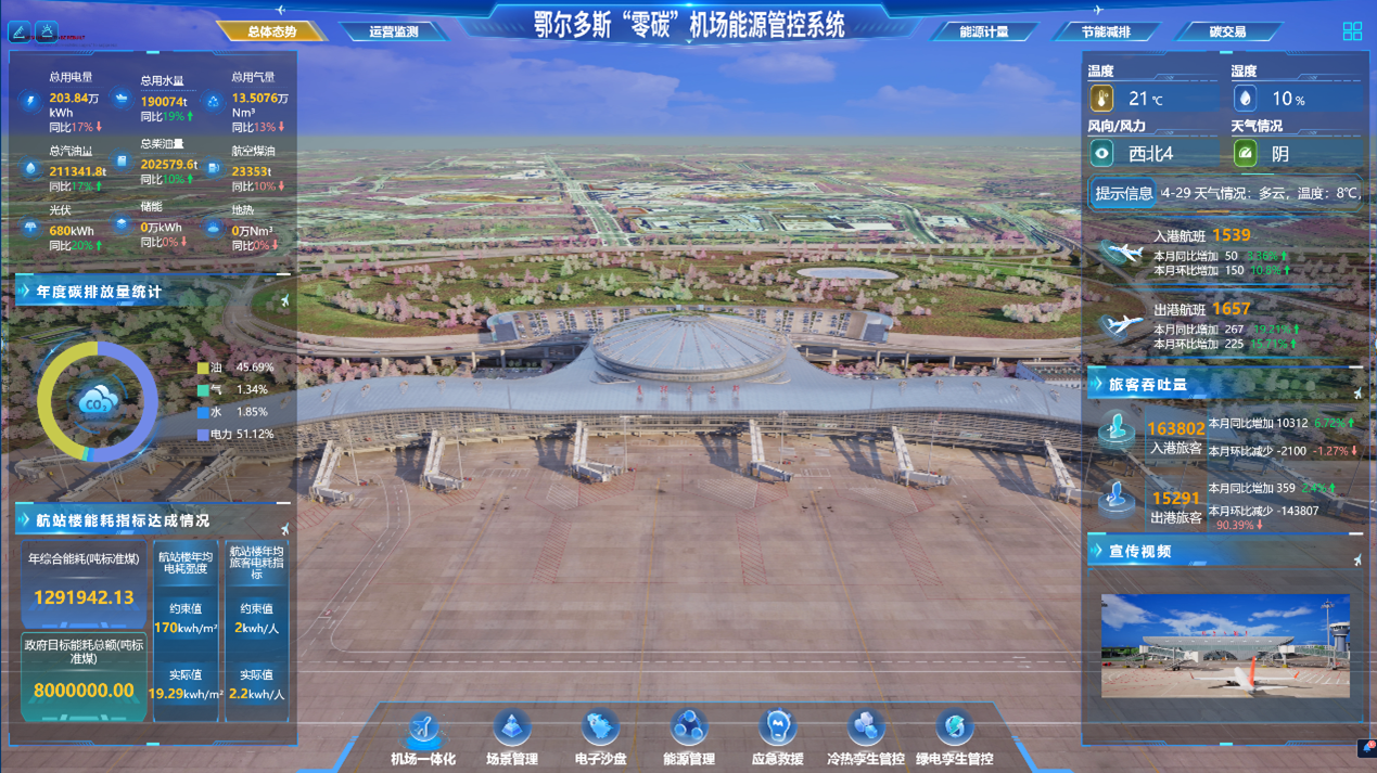 龍軟科技承建的鄂爾多斯零碳機場能源管控系統(tǒng)