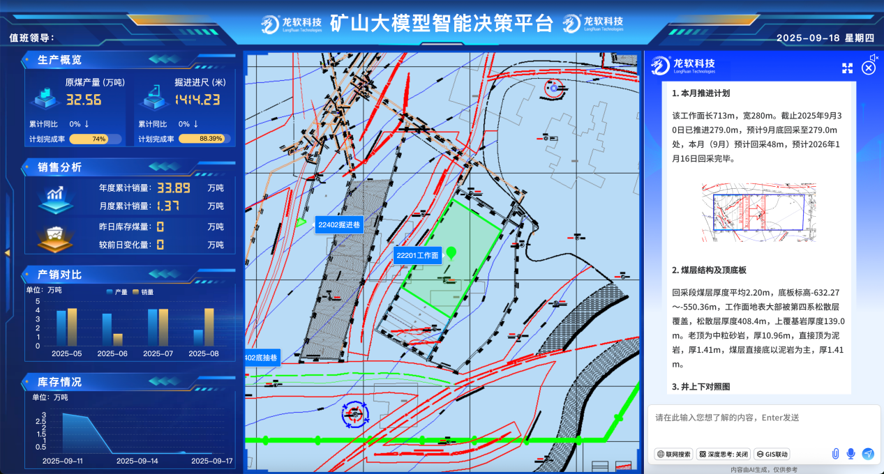 龍軟時空大模型1.0(Loong Model 1.0)是基于團隊多年在地理信息、時空智能、工業(yè)互聯(lián)網(wǎng)、大數(shù)據(jù)等領(lǐng)域的技術(shù)積累,研發(fā)推出的首個工程領(lǐng)域,特別是礦山工程領(lǐng)域人工時空智能大模型及應(yīng)用系統(tǒng)。通過自研的矢量圖形大模型、面向視覺的智能分析模型等,以礦山等行業(yè)為應(yīng)用場景,通過知識訓練、私域知識和經(jīng)驗學習,實現(xiàn)對多源多模態(tài)數(shù)據(jù)的實時分析和深度理解,破解礦山領(lǐng)域矢量處理困難、行業(yè)知識融合不足、流程管控復(fù)雜等痛點,提供與安全生產(chǎn)全生命周期相關(guān)的“智能設(shè)計、智能問答、智能問數(shù)、智能看圖、智能分析決策”等應(yīng)用。最終通過“時空感知-精準決策-高效執(zhí)行”的新模式,推動人工智能與礦山領(lǐng)域從“淺層結(jié)合”邁向“深度融合”,讓AI從“讀懂文字”升級到“看懂圖形”,從理解語言走向洞察空間,解決了目前大預(yù)言模型無法滿足工程領(lǐng)域矢量圖形處理的重大需求。