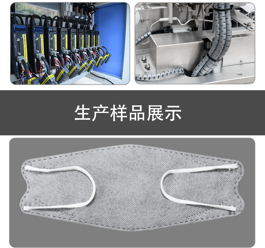 全電高速KF94魚型口罩機是南方力勁在過去16年口罩機經(jīng)驗積累的基礎(chǔ)上,針對現(xiàn)在口罩有強烈市場需求而開發(fā)的全電驅(qū)動的一款全自動高速口罩機。該機器具有操作簡單,維護方便,穩(wěn)定高效等諸多優(yōu)點,會用手機就會操作南方力勁全自動口罩機。機器采用三段式設(shè)計,有智能料架,帶自動糾偏,自動張力控制,手漲軸方便上下料;口罩本體機與口罩耳帶焊接機均采用電機控制,焊點定位精準(zhǔn),調(diào)試操作均更為簡便。